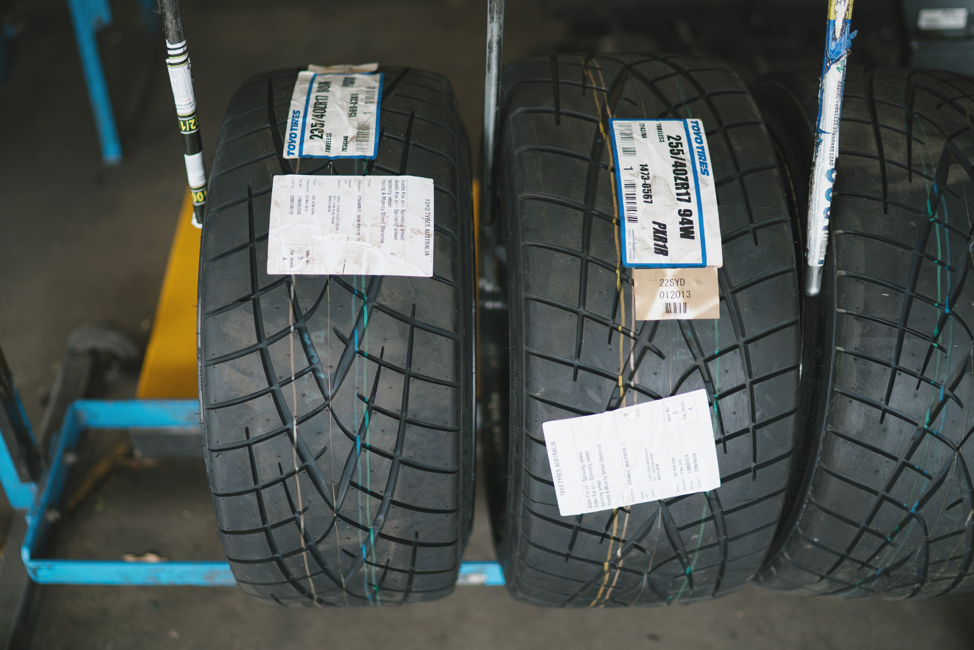 FAT RUBBER FTW! Much thanks to Toyo Tyres Australia for the R1R’s going on our S15 build. The wheels are the same size all round so we’ve gone for a staggered set of tyres. 235’s at the front and 255’s at the rear. The rears look damn fat! So fat that the tyres stick out just past the rim’s face. Perfecto! The front’s were a bit of a stretch, but we’re thinking this might not be a bad thing as 9.5 wide rims are pretty wide for the front.
