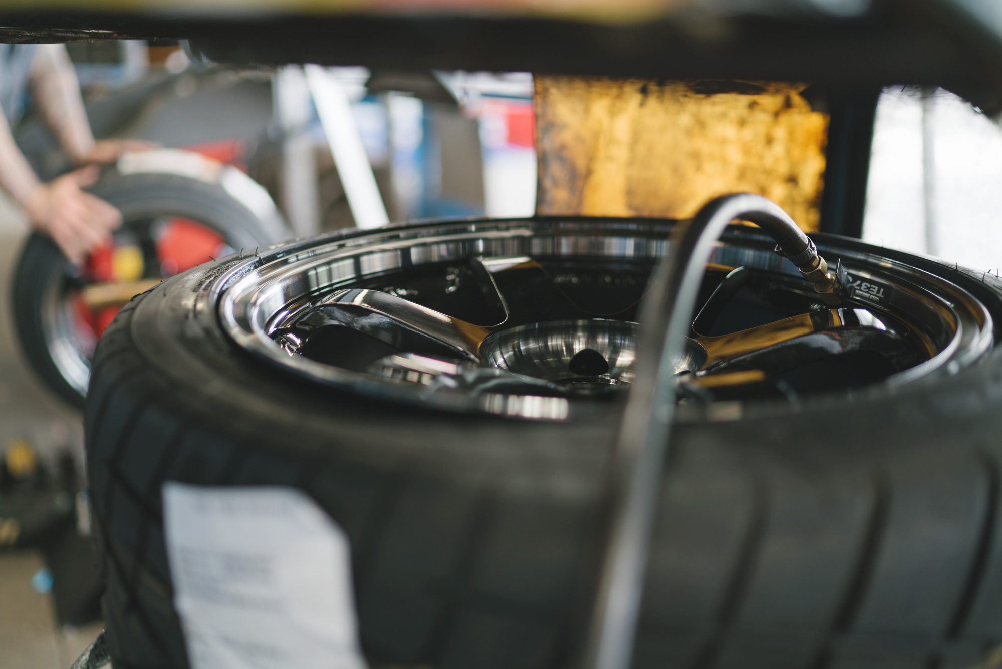 Then to fit tyres onto our rims.