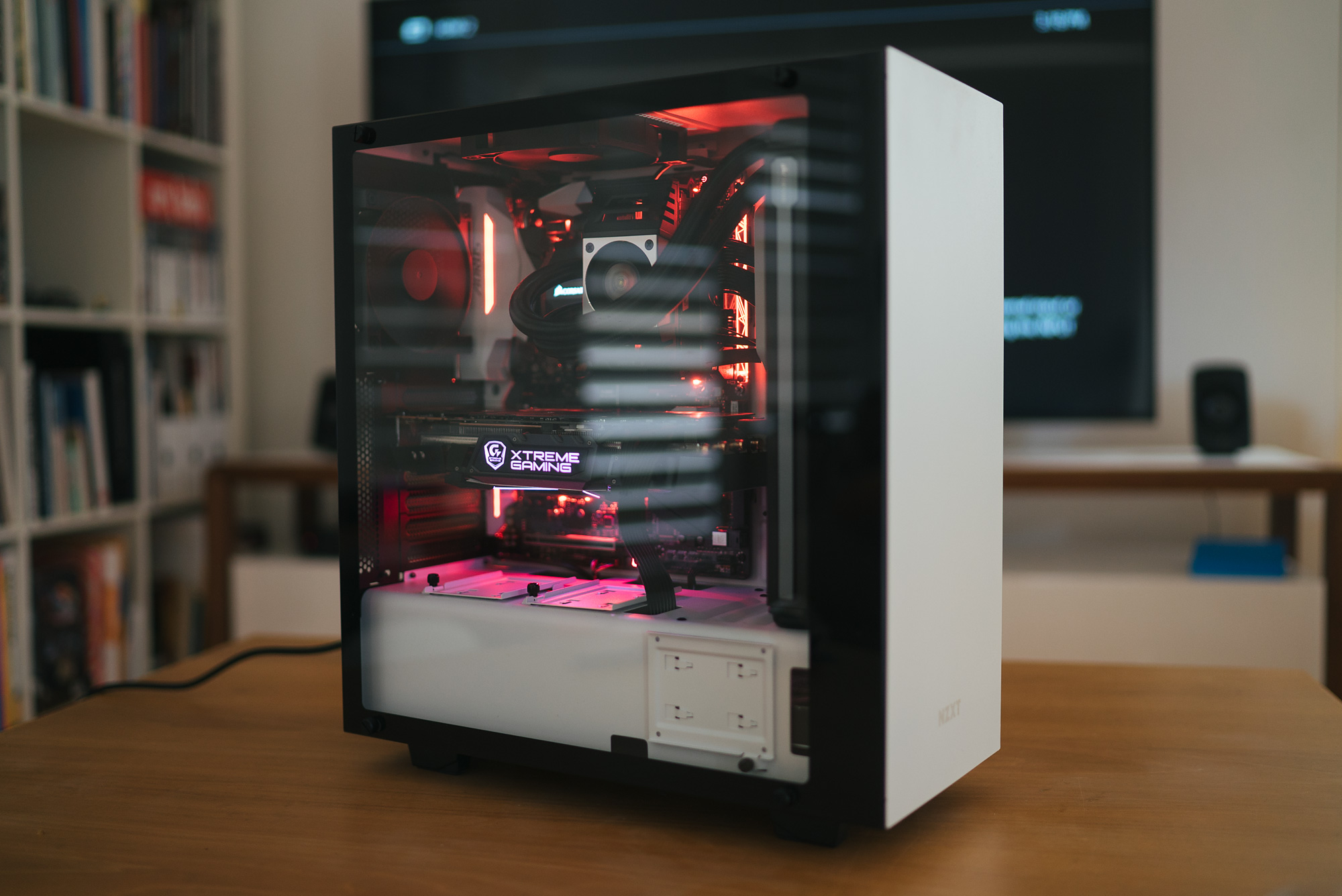 The fans that came with the case are super quiet, the cooler fans are crazy quiet, and the shitty little fan that sits on top of the RAM is the noisiest fan of the lot, go figure! I can’t hear the PC at all where it sits though. The NZXT S340 Elite case made it super easy for me to create a minimalist clean setup. Cable management on this thin is fantastic. The only issue was the cooler was too big to sit in front of the fans, as the case has a control unit up there, luckily I figured out I could mount the fans first, then the cooler, which made for a way sexier build in the end IMHO!