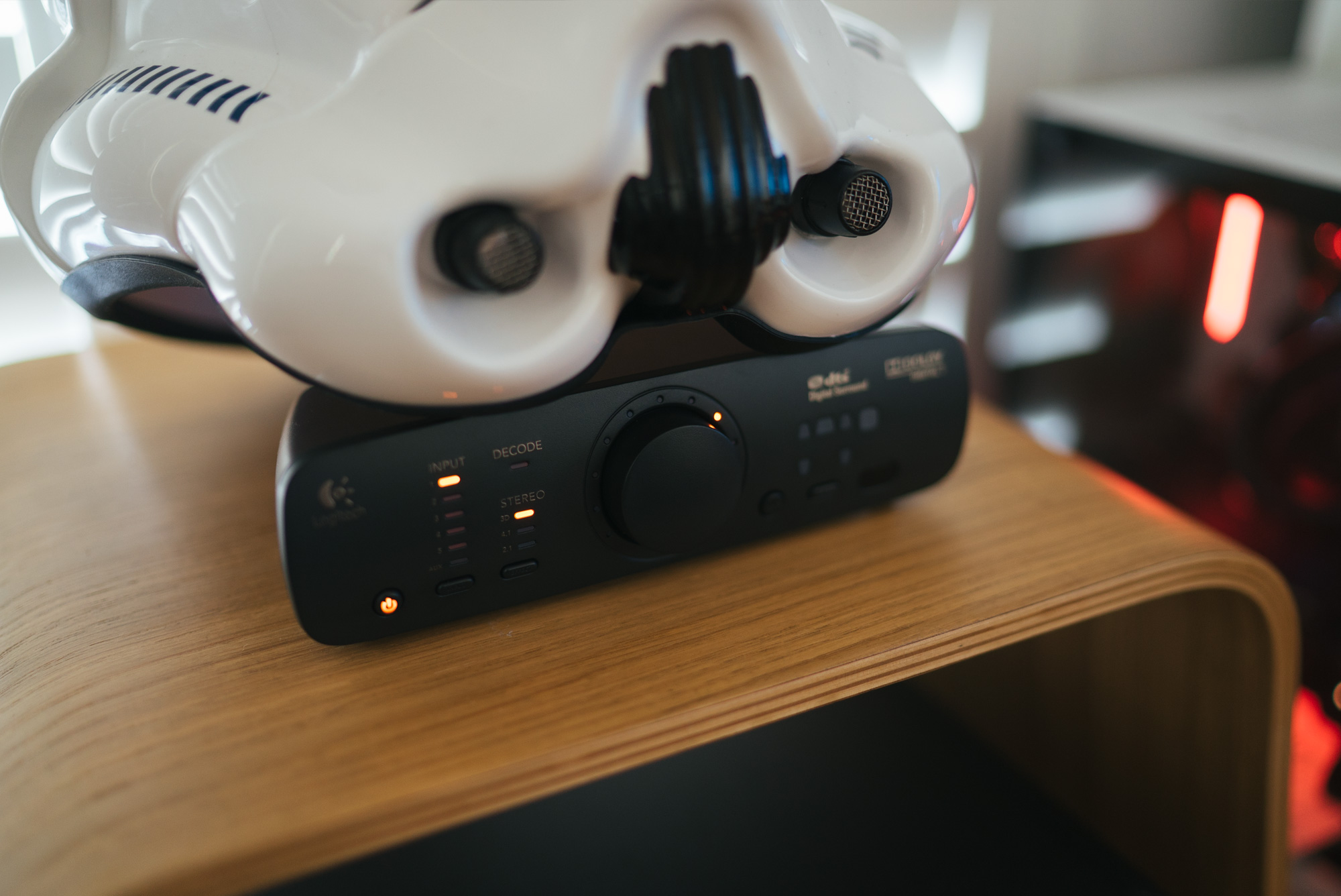 I hid the Logitech main control unit under my Stormtrooper helmet, it’s the little things!