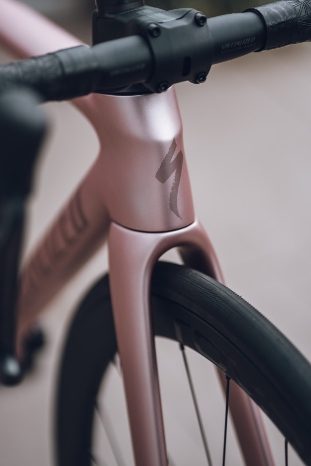 Dropped in to Wooly’s Wheels today to pick up Gina’s new Tarmac SL8 Expert in Satin Champagne / Black Pearl. Such a lovely colour!