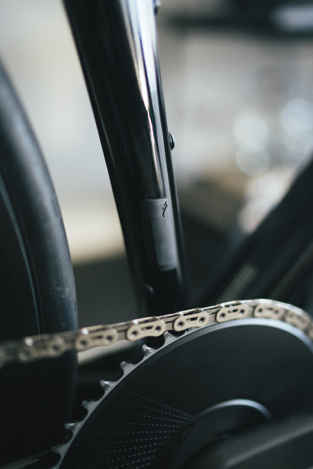COMPONENTS: S-Works Tarmac SL7 stem 110mm -12 degree, Tarmac SL7 stem cable bat and stem cover kit, RaceWare 3D printed spacer, Specialized Roval Rapide handlebars 380mm, Burgh Lightning Bar Tape, Specialized S-Works Power saddle 143mm & carbon rail clamp, S-Works Tarmac FACT Carbon seatpost 20mm offset, Xpedo Thrust SL titanium pedals, Specialized front derailleur mount cover, S-WORKS bottle cage bolts.