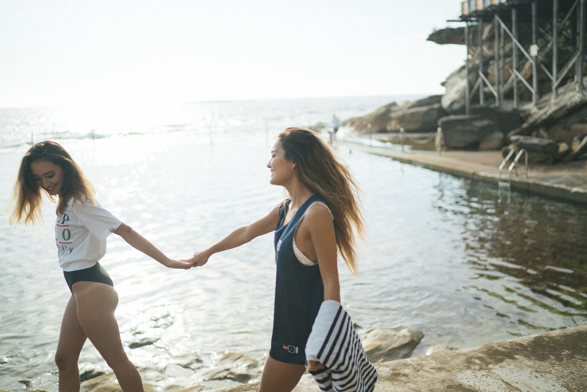 Beau from Geedup invited me to shoot some behind the scenes shots of Eurasian Hotties Mimi Perkins and Lea Niksic in Geedup gear this morning. Turns out the location was Wylie’s Bath’s down the road from my place, and the photographer was Brix, who I’ve been meaning to meet for some time (love his work and was super fun watching him work it!). There was quite the crew; LindaQ makeup, video guy was Adam from Redscope and Ben from Eurasian Hotties was there too.