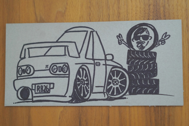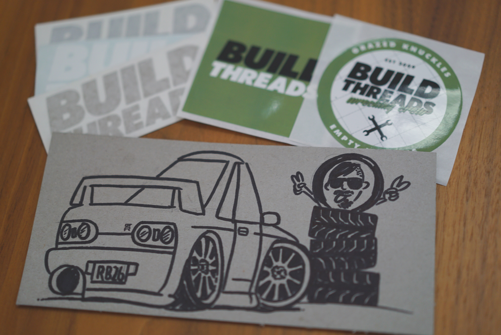 Got some stickers in the mail from Build Threads, but as a bonus I got this amazing drawing of my GT-R, with a stack of new Toyo R888’s and myself in it too! SO COOL! Support Build Threads by buying some stickers off them here, they’re in it for the love!!!