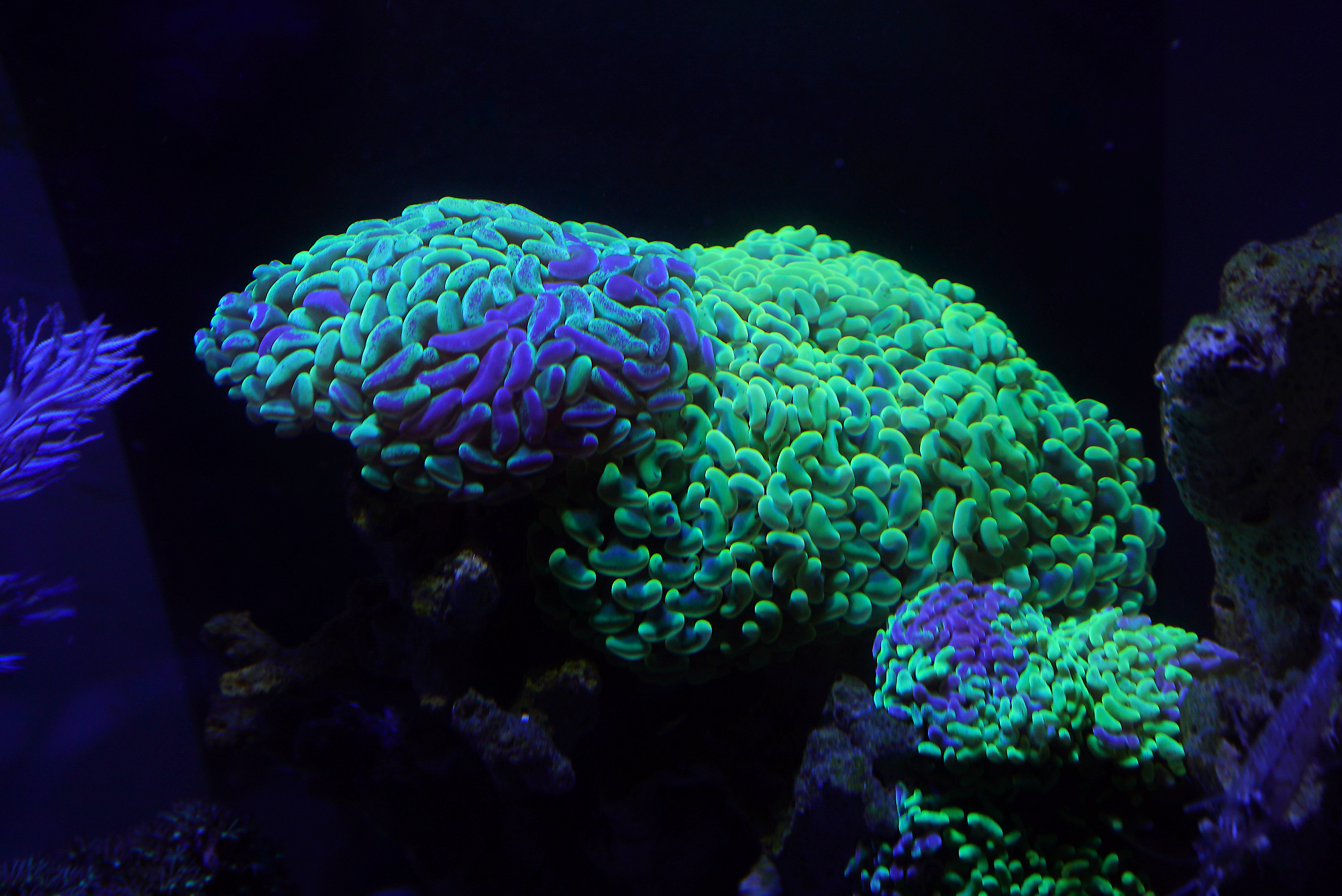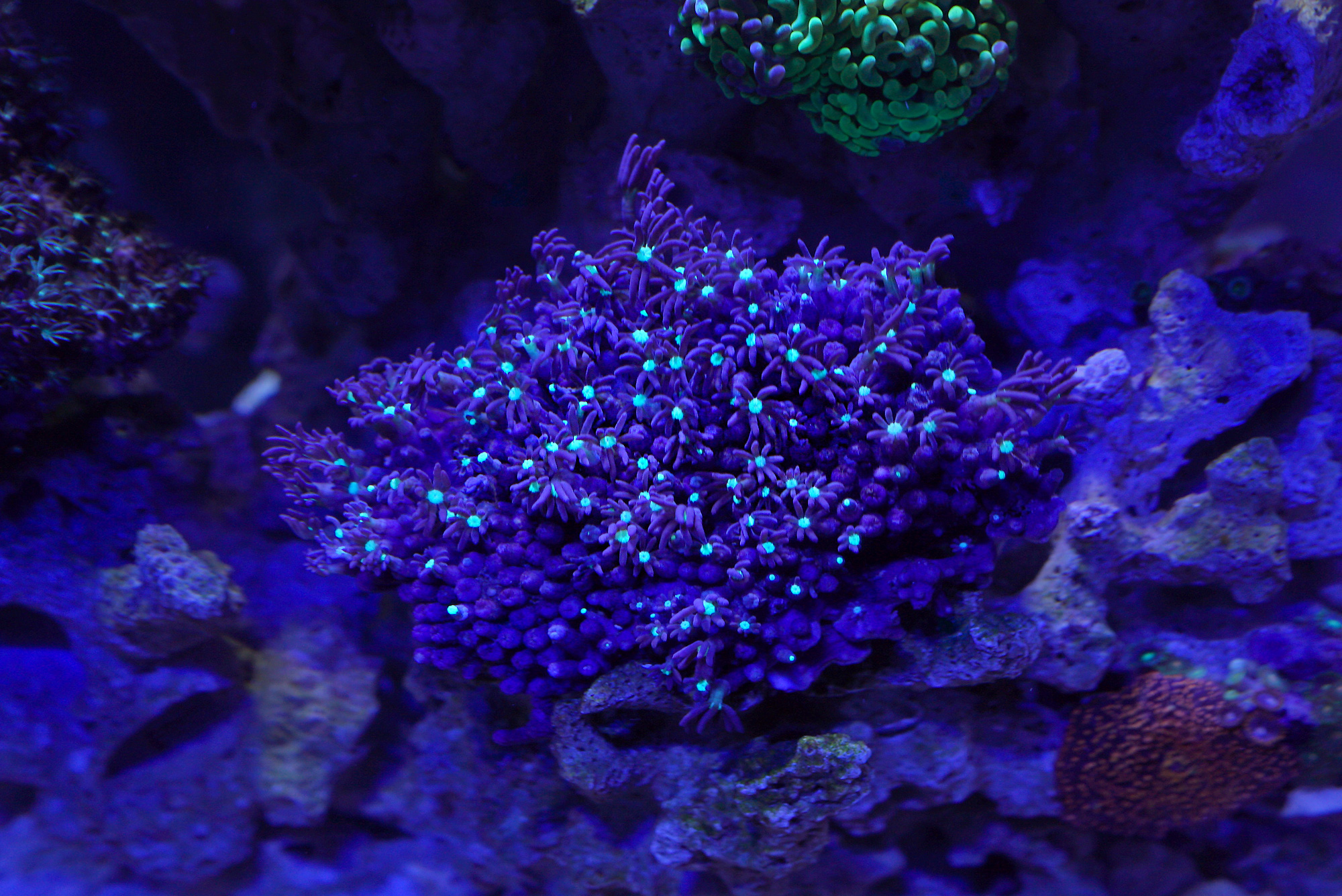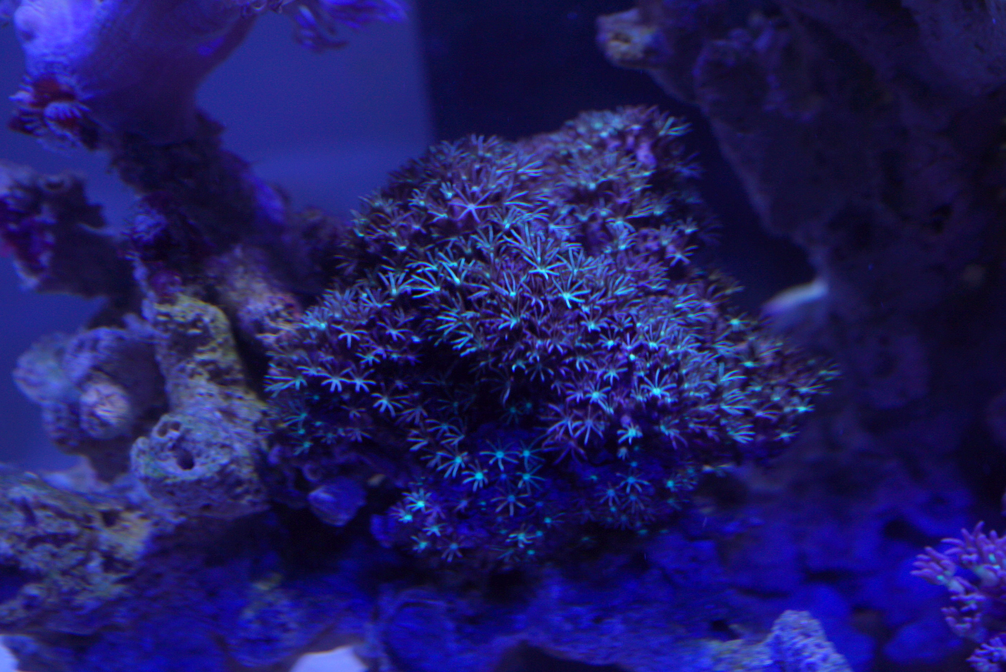 Normal/larger star polyps. They had opened up completely but got pretty grumpy when I took them out and cut off a bit which was hosting an aiptasia anemone. I like how they move with the flow though, very nice.