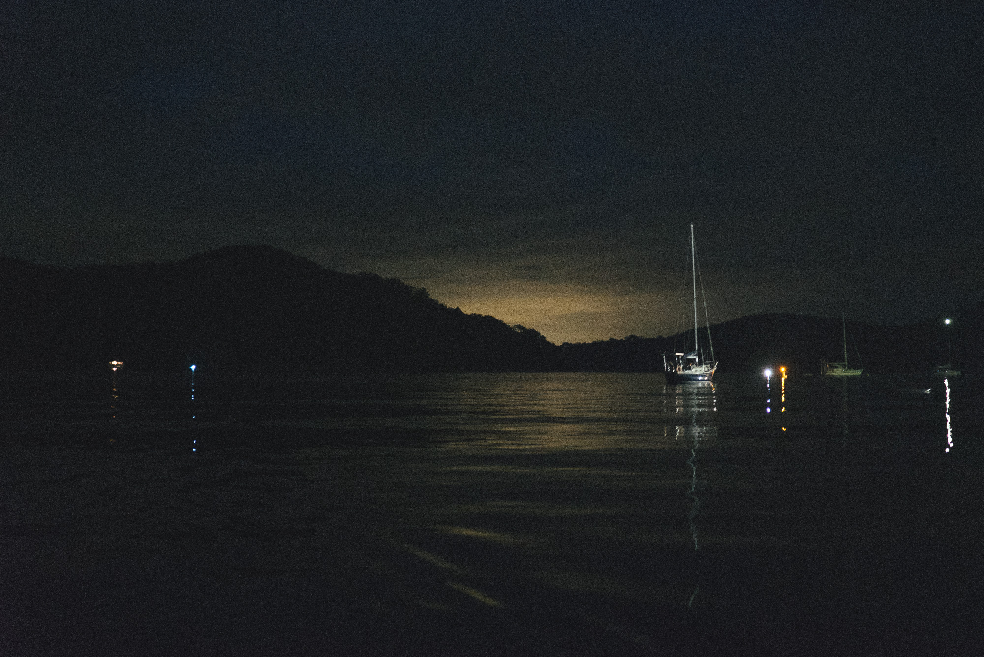 How’s the serenity? That orange glow is coming from the anchor down light. We found a great looking spot, others came and anchored down next to us, which made us think we had the right spot, but nope, we still didn’t pull anything up.
