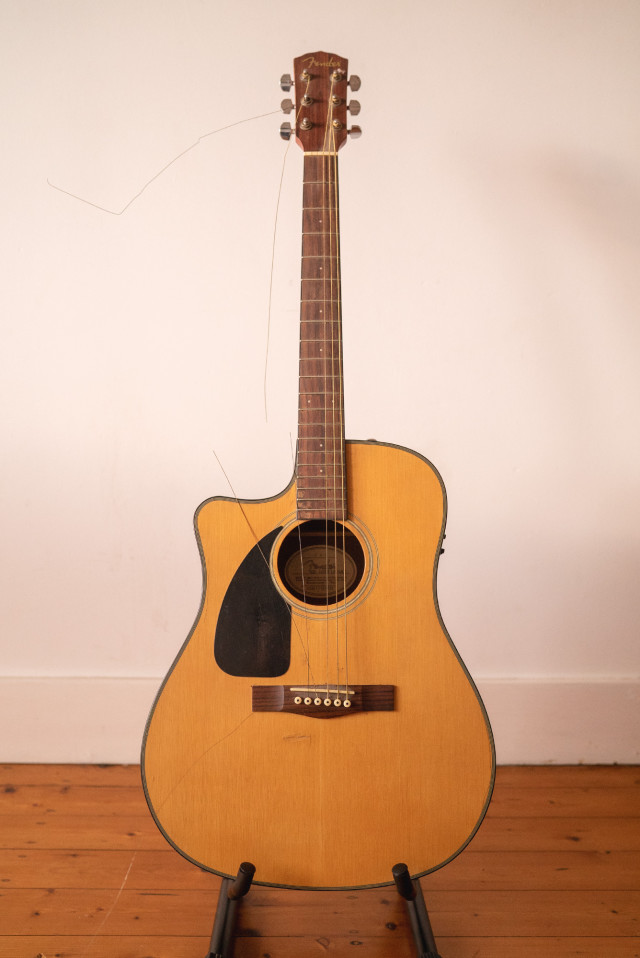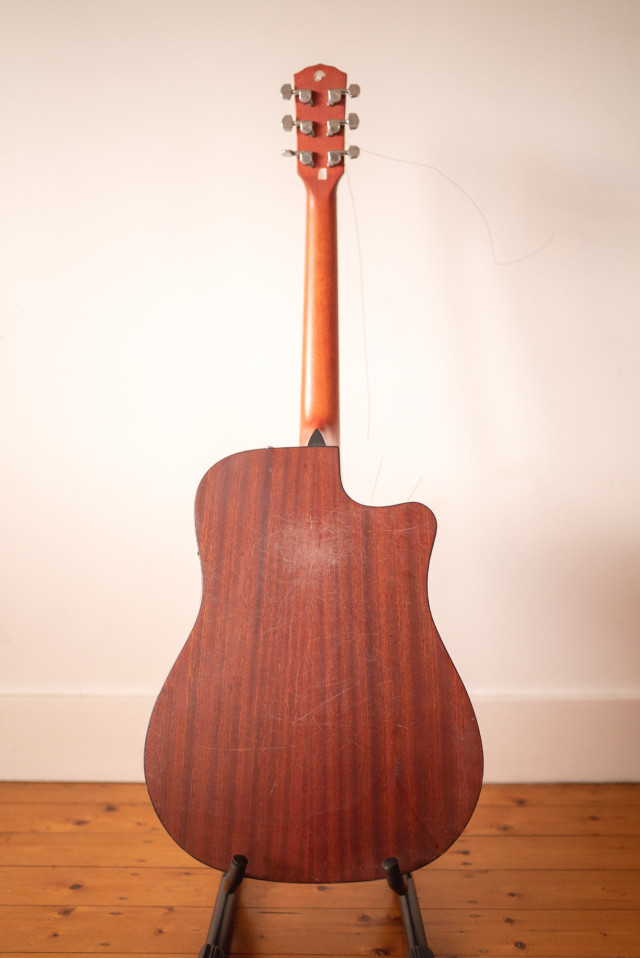 Yesterday morning I spotted this Fender CD-100CE dreadnought cutaway electro acoustic guitar on Facebook Marketplace for $50. I quite literally jumped on it and she’s now mine.