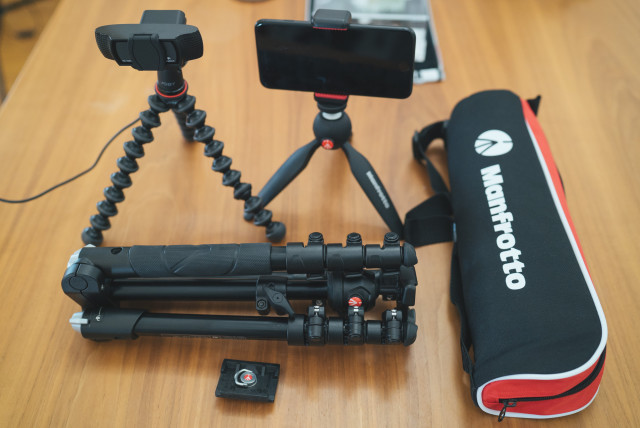 Manfrotto BeFree (lame name but it’s solid for such a compact thing) and some other small goodies.