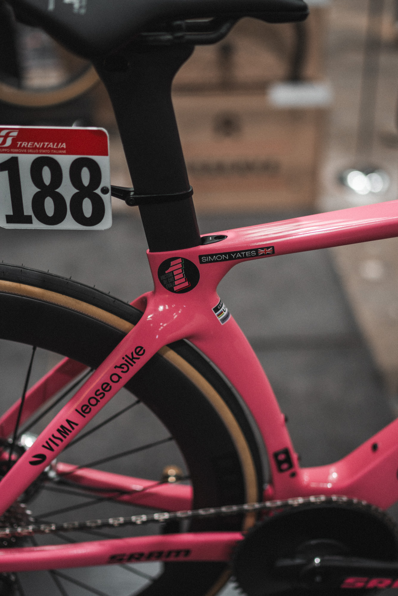 Is it wrong of me to love a big brand bike amongst so many hand made bikes? Simon Yates is 172cm tall, but chooses to ride a size 48 Cervelo S5 with a long stem, full stack of spacers and a 0 offset seatpost with his saddle pushed all the way forwards.
