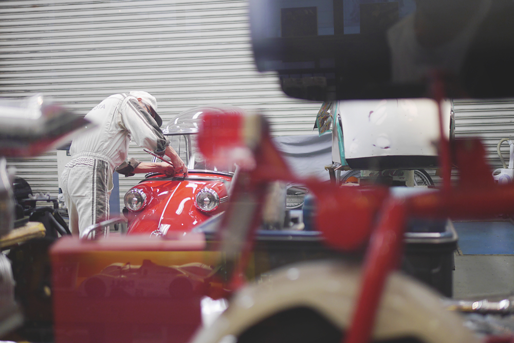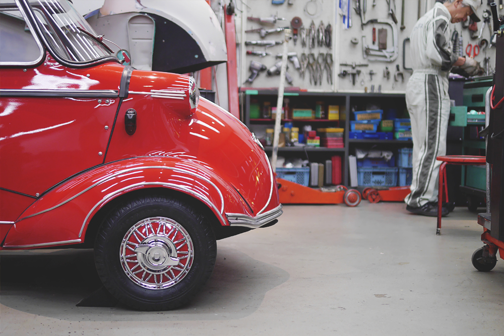 This old dude was working in a garage behind glass. I asked the store cashier if we could go inside, and after asking the old dude inside if it was OK if we all came in, we got the thumbs up!